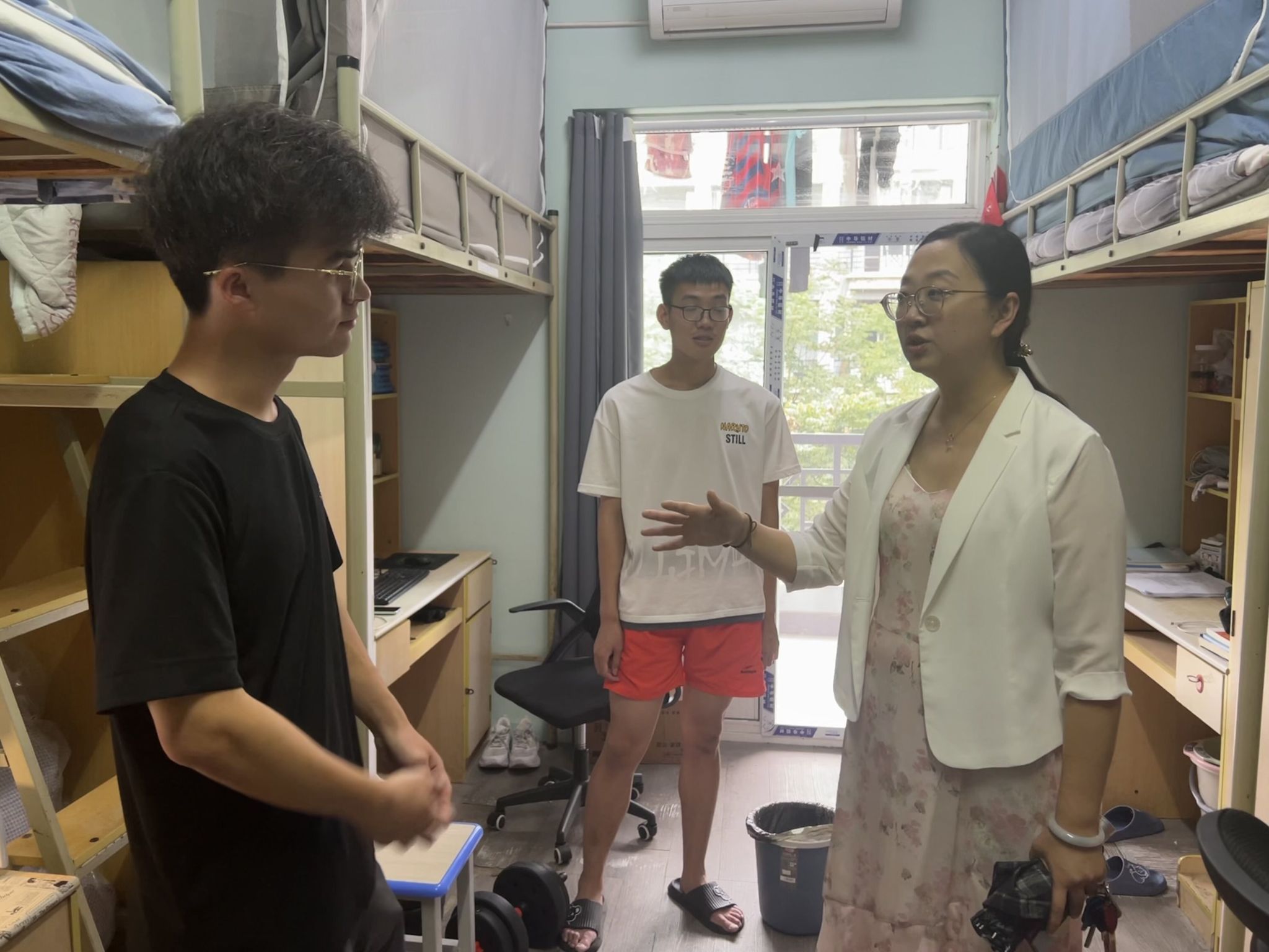 (孟佳查看宿舍安全和卫生情况 许玉竺 摄)