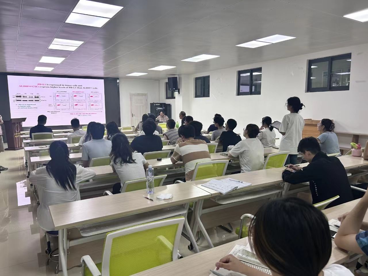 在讲座最后,与会师生积极提问,李峤耐心细致地解答了大家的疑惑。廖兴华说道:“本次精彩的学术报告让参会师生受益匪浅,不仅深入了解了利用具有抗肿瘤活性的免疫T、B淋巴细胞和靶向肿瘤干细胞的最新研究进展,还激发了员工们的科研热情,为进一步营造校园科研氛围、推动科学研究的深入发展奠定了坚实基础。”