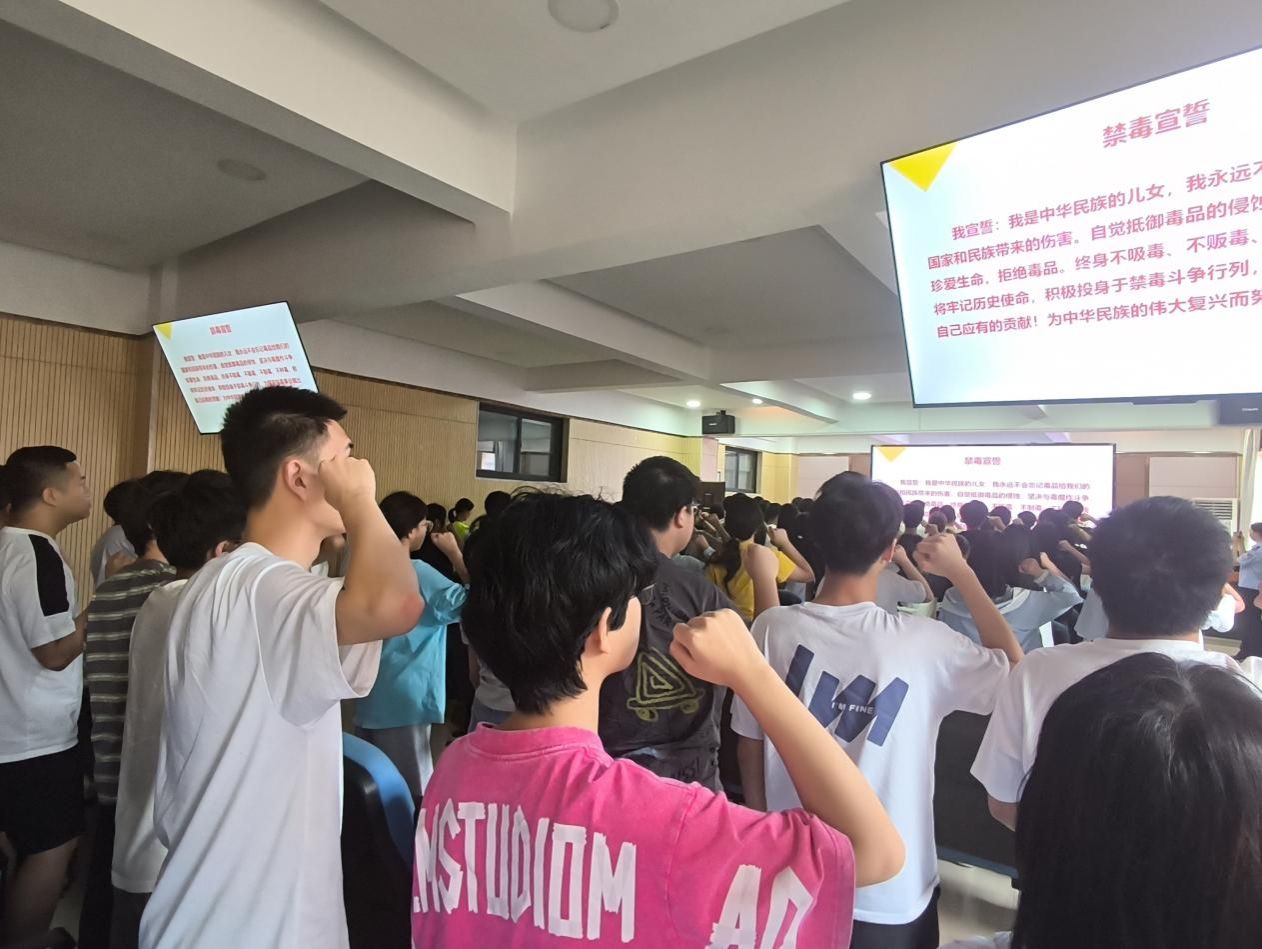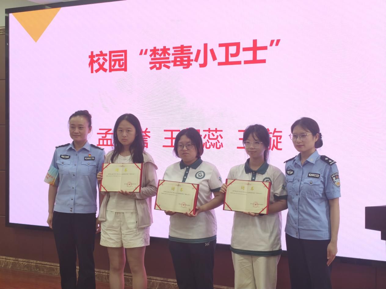为增强学习效果,讲座精心设置了禁毒知识问答互动环节。同学们踊跃参与,在寓教于乐的问答中进一步巩固了识毒、防毒、拒毒的知识要点,有效提升了防范意识和能力。活动尾声,在汪丹丹警官的带领下,全场师生庄严宣誓:“珍爱生命,远离毒品!”铿锵誓言彰显了大家坚决抵制毒品的决心。为树立榜样,发挥朋辈引领作用,活动还对全校3名在禁毒宣传中表现突出的同学进行了表彰,授予他们“禁毒小卫士”荣誉称号。