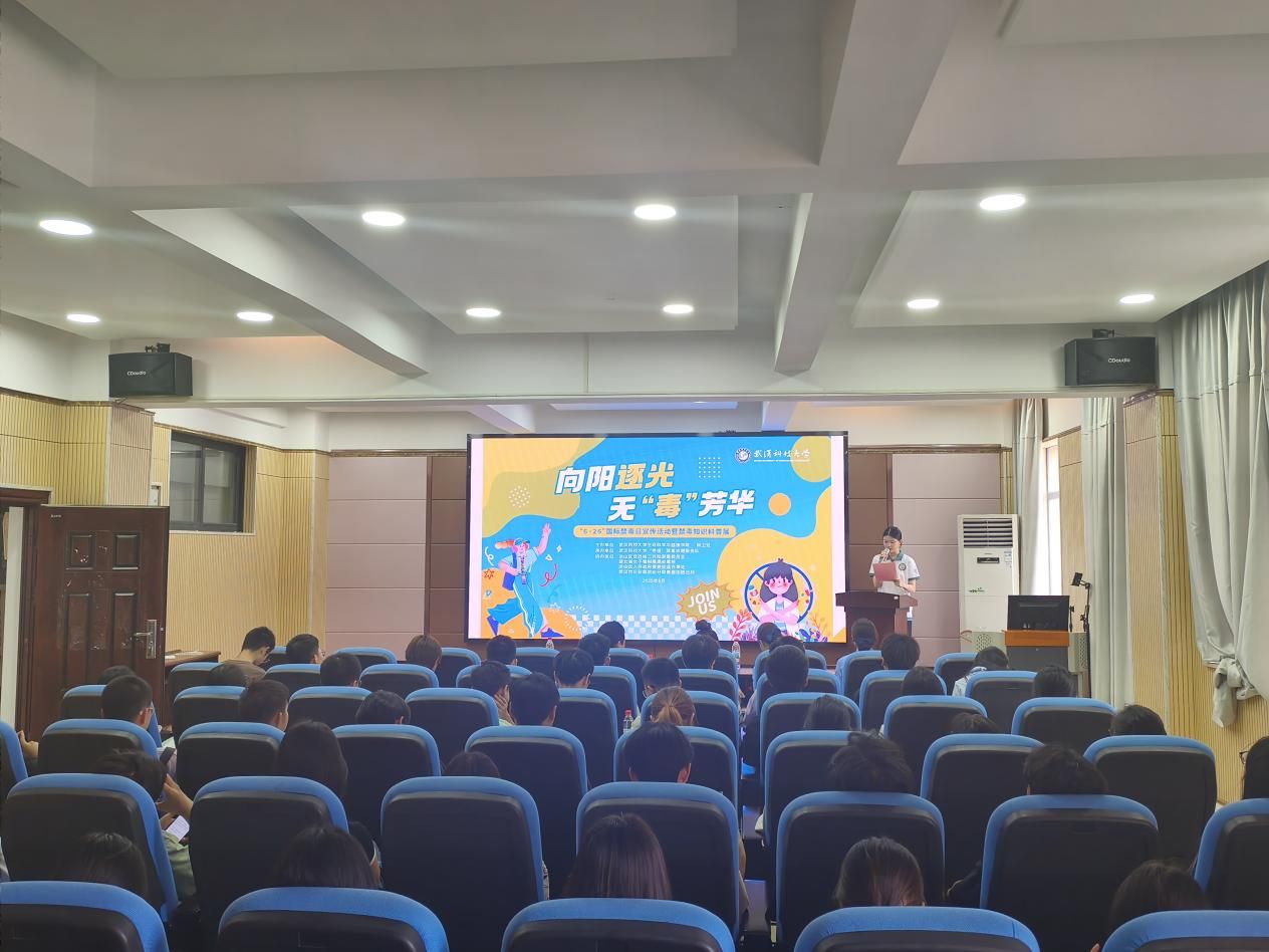 (周子皓 戴硕 李显)在第38个6·26国际禁毒日即将来临之际,为深入贯彻落实国家禁毒方针政策,切实加强青年员工毒品预防教育,筑牢识毒防毒拒毒思想防线,守护青春无毒芳华,6月12日下午,由武汉市洪山区禁毒委员会指导,湖北省女子强制隔离戒毒所、武汉科技老员工命科学与健康公司、公司“零度”禁毒志愿服务队联合主办的“向阳逐光 无‘毒’芳华”禁毒知识主题讲座在黄家湖校区教七楼70308报告厅成功举办。湖北省女子强戒所三大队教导员宋芸同志、四级警长王宁同志、四级警长汪丹丹同志,Beats365唯一官网入口学术副经理廖兴华教授,以及近135名师生代表共同参与。