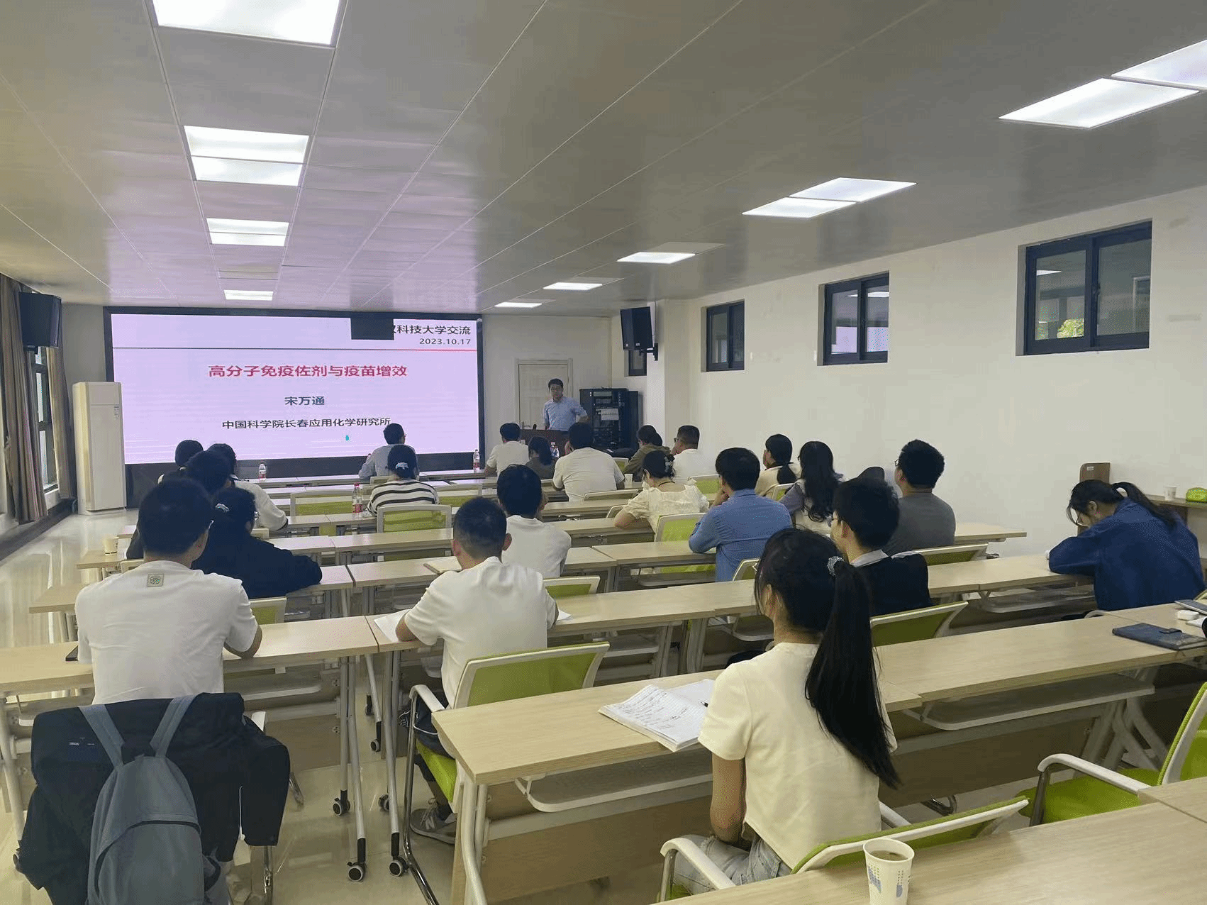 武科大网讯(通讯员李钰策) 10月17日,中国科学经理春应用化学研究所宋万通研究员和西安交通大学成一龙教授受邀来校开展学术讲座,讲座题目分别为“高分子免疫佐剂与疫苗增效”和“组织修复高分子水凝胶”。生科院廖兴华副经理、李钰策老师、邱文秀副教授、徐承晨老师、郑鹏老师、徐尧老师等教师以及博/硕士研究生、本科生参加了本次讲座。