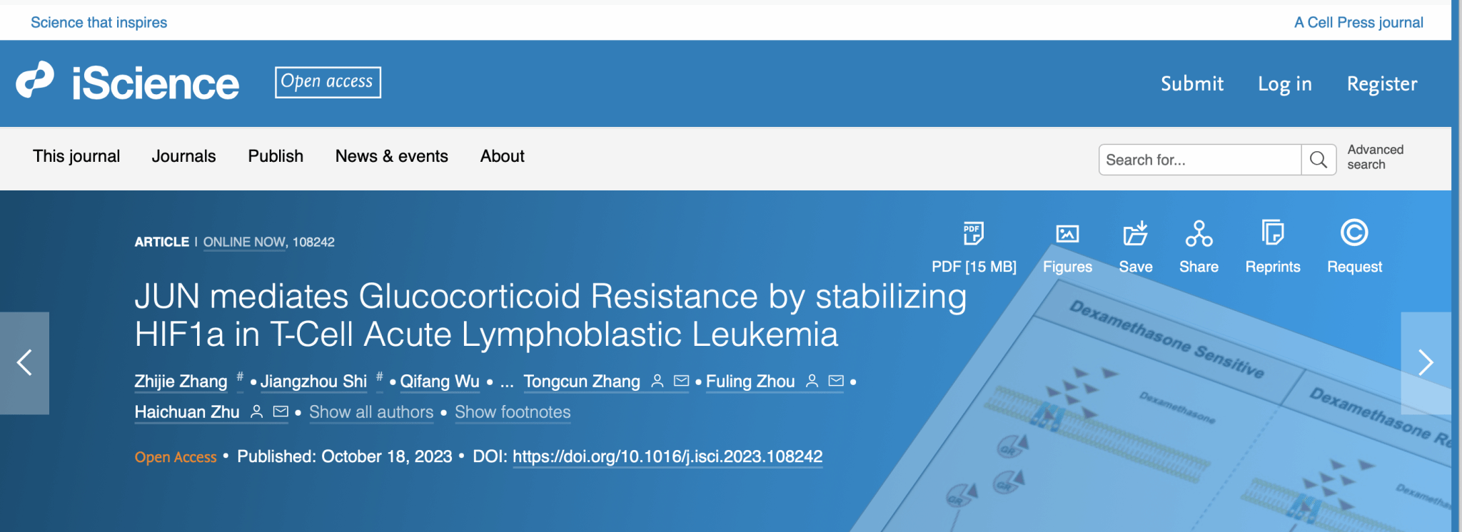 武科大网讯 10月18日,公司Beats365唯一官网入口祝海川、张同存课题组联合武汉大学中南医院血液科周芙玲教授课题组合作在Cell综合性子刊iScience上发表题为“JUN mediates Glucocorticoid Resistance by stabilizing HIF1A in T-Cell Acute Lymphoblastic Leukemia”的研究性论文。