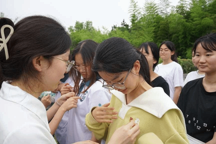 在廉园的许白昊的雕像前,在嘹亮的国歌声后,公司领导和毕业生党员代表为新发展的党员佩戴党徽,毕业生党员夏文新祝愿新党员们不忘初心,砥砺前行。随后,全体师生党员们面向党旗重温入党誓词。