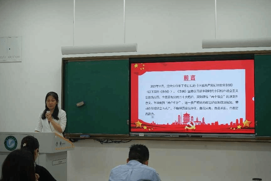 公司党委书记王婧给毕业生党员讲授《学习解读<中国共产党纪律处分条例>》的专题党课。她结合《中国共产党纪律处分条例》修订的背景和过程,着重向在座学子强调了《中国共产党纪律处分条例》修订的重要意义,介绍了条例修订的主要内容,分享党史中的纪律故事。引导全体毕业生党员坚持不懈用习近平新时代中国特色社会主义思想武装头脑,自觉增强“四个意识”、坚定“四个自信”、做到“两个维护”、捍卫“两个确立”,强化党性意识和组织观念。